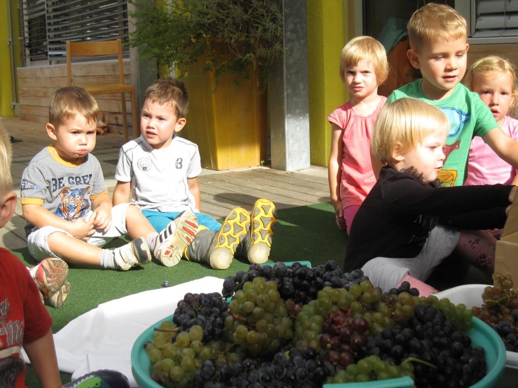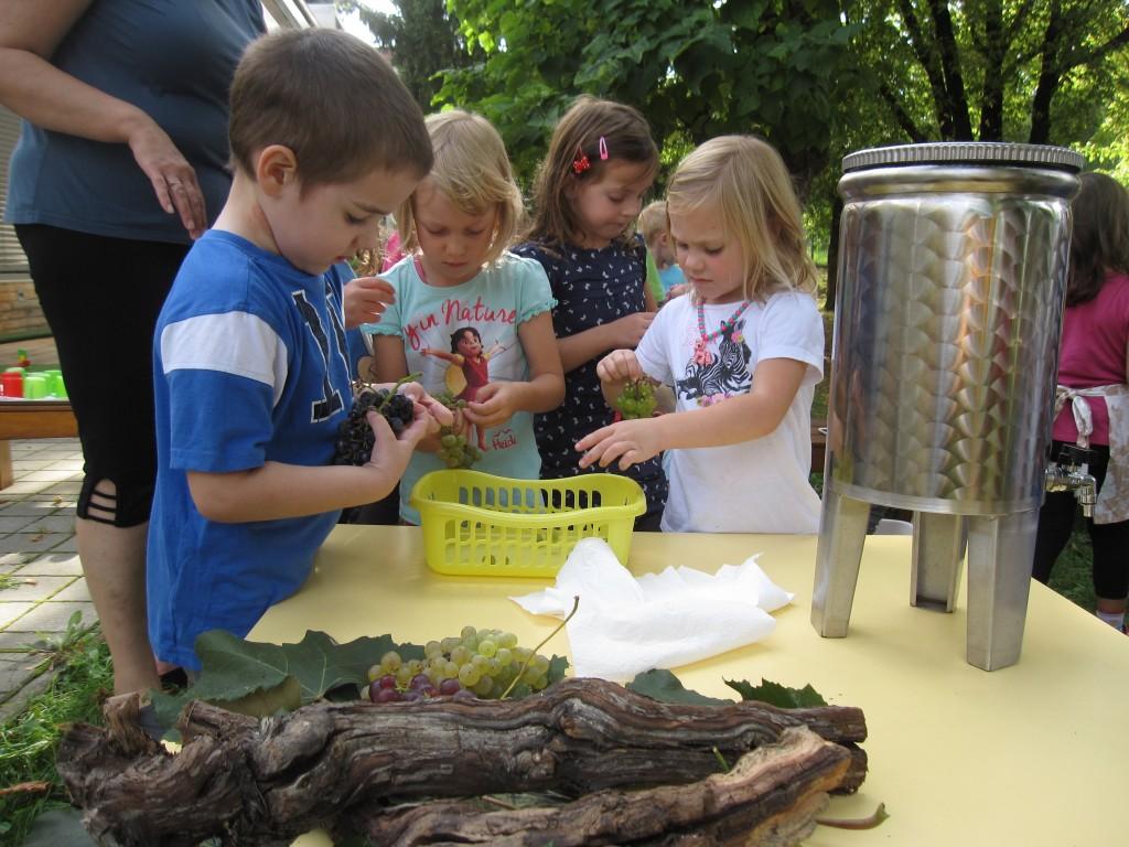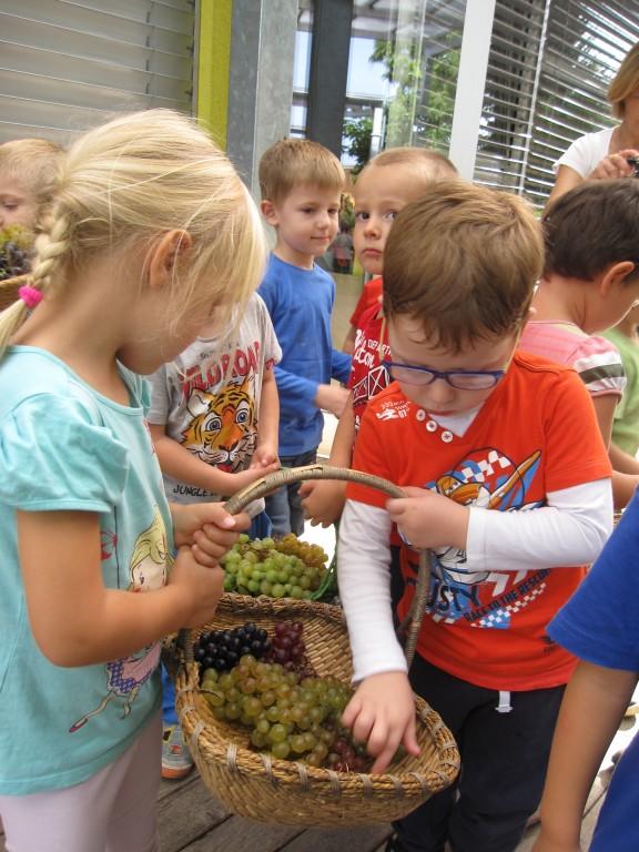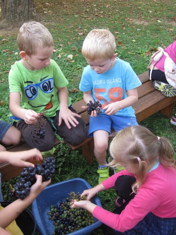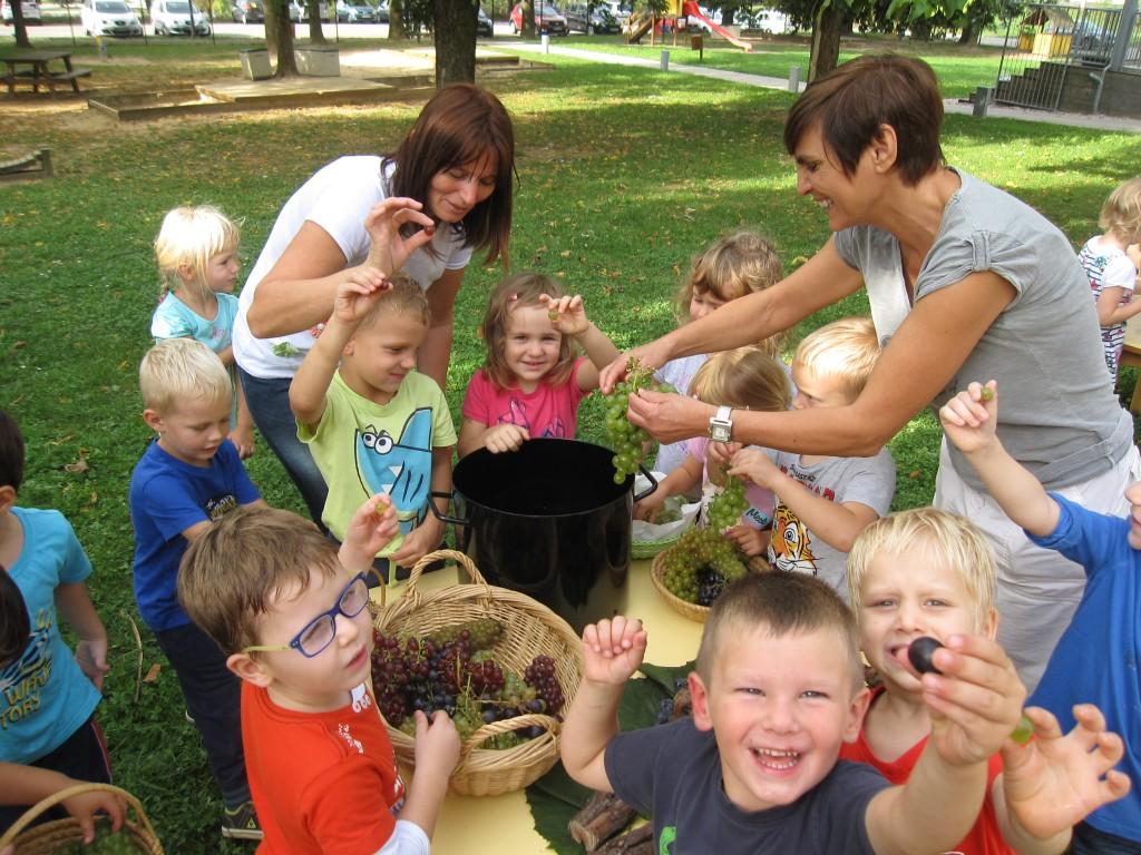 Najmlajši Ostržki so grozdje razvrščali po barvi, malo večji so ločevali jagode od pecljev. Največji in najmočnejši Ostržki so ga stiskali v stiskalnici.